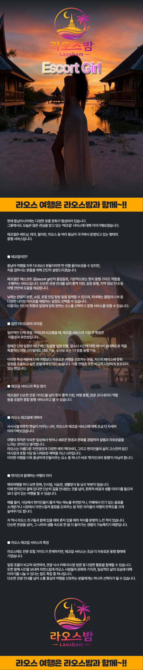 우선 라밤을 찾아주신 모든 사장님들께 감사 인사 올리겠습니다. 저희 라밤은 라오스의 밤문화 전문 가이드로써 모든여행자분들에게 잊지 못할 여행으로 만들어 드리는 밤문화 전문입니다.